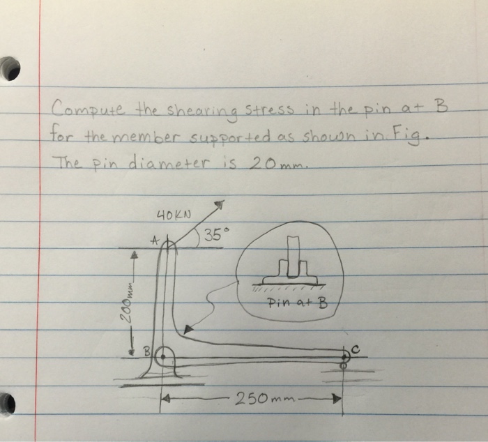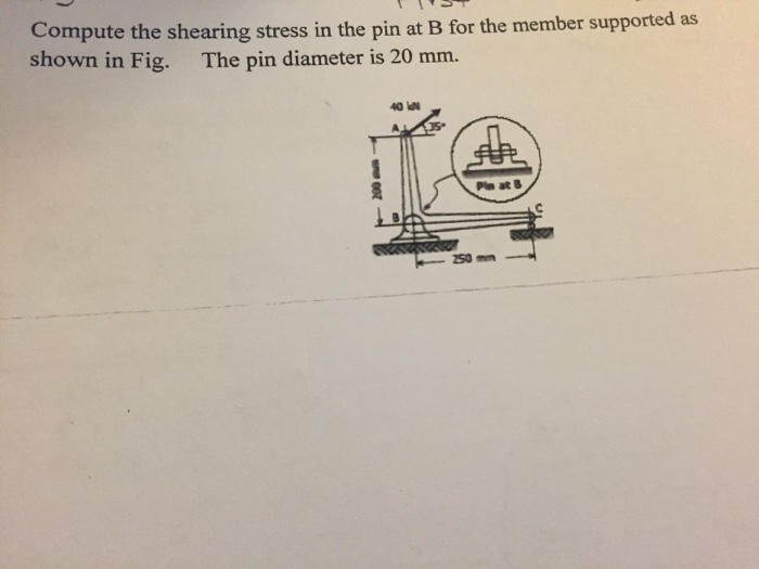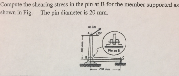 Compute The Shearing Stress In The Pin At B For The Member Supported As Shown. Problem 3 The members of the structure in Fig. As in Figure c in the shear example figures a hole is to be punched out of a plate having a shearing strength of 40 ksi.