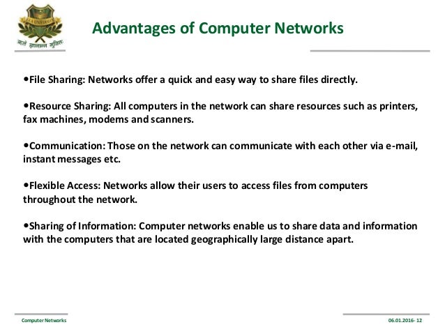 The major advantage of a computer network is that is allows file sharing and remote file access. Without Computer knowledge we cant any works. The Advantages of Network-Based Organizations.